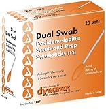 Pk/1 – Bx/25 * Each scrub swabstick is saturated with a 7.5% Povidone-Iodine scrub solution * Each prep swabstick is saturated with a 10% Povidone-Iodine prep solution * Use to clean skin prior to venipuncture I.V. starts renal dialysis pre-op prep an